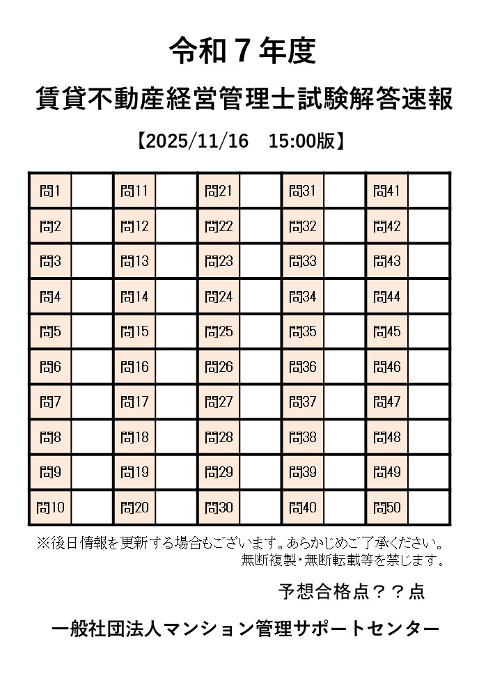 令和7年度 賃貸不動産経営管理士試験解答速報