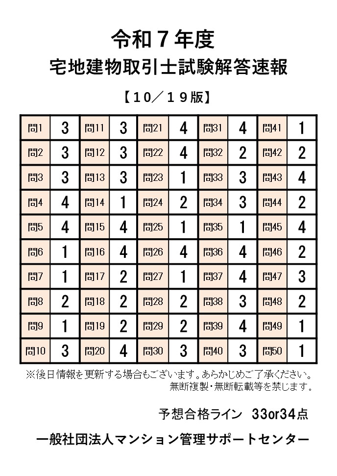 令和7年度 宅地建物取引士 本試験 予想合格ラインは33or34点とさせていただきます。